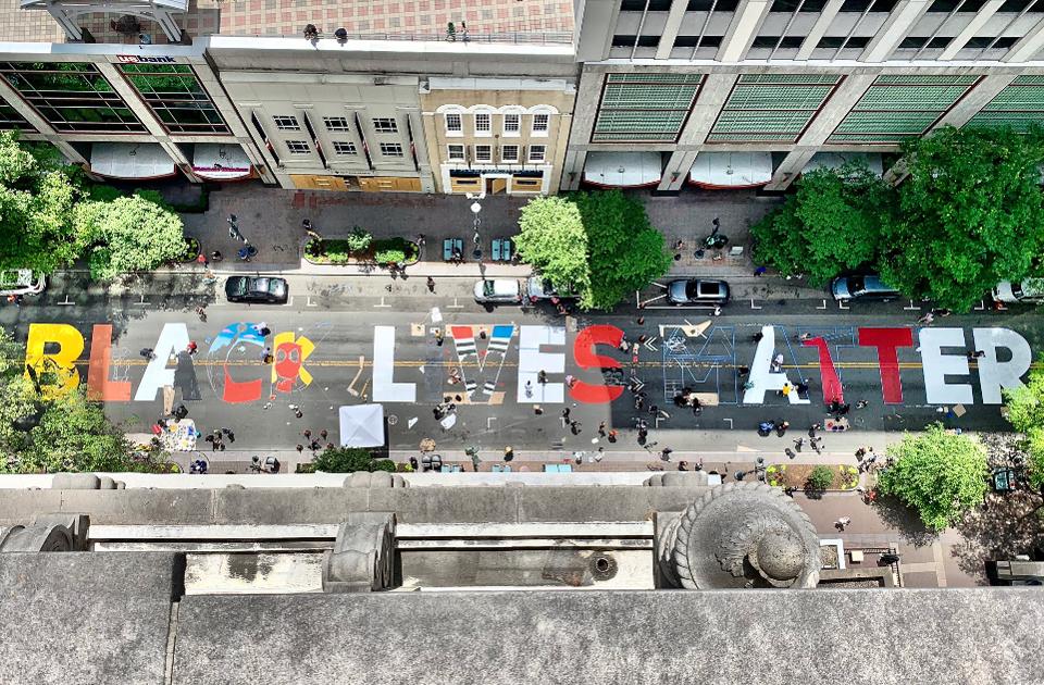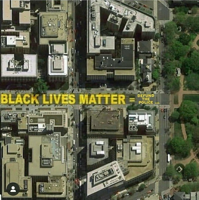 Later local Movement for Black Lives groups including BLM DC and BYP 100 had volunteers add to the mural. The said Black Lives Matter = Defund the Police. I really can’t think of a more fitting response to Bowser’s attempt to co-opt support for the Movement to cover her own political miscalculations.